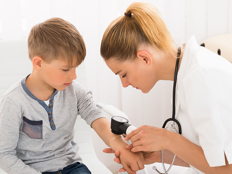If you think your child might have an issue with their skin, take them to see their pediatrician. If your child needs to see a pediatric dermatologist, the pediatrician will refer them.